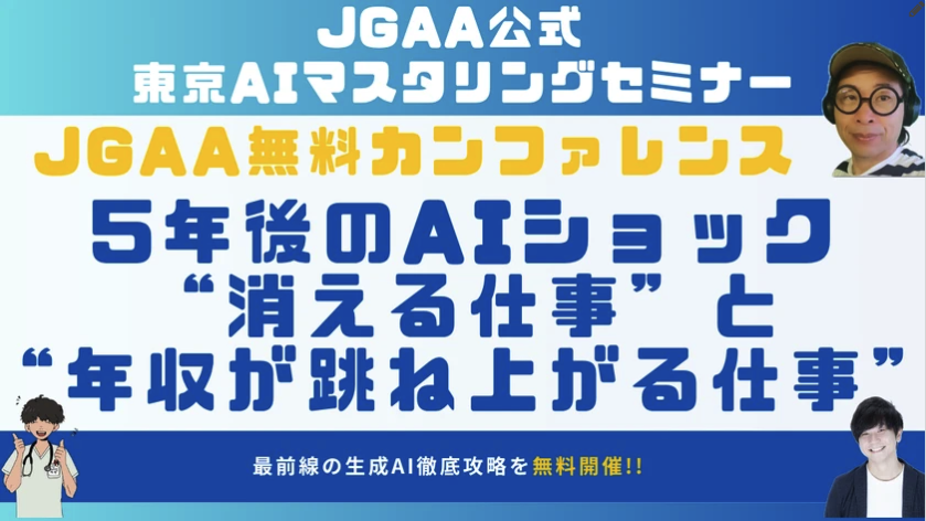 AGI(汎用人工知能)・ASI(超知能)時代を目前に控え、私たちの仕事と働き方は劇的な変化を迎えようとしています。本カンファレンスでは、日本生成AI推進協会の理事長・副理事長・副会長が一堂に会し、「5年後のAIショック」をテーマに、これから消える仕事と年収が跳ね上がる仕事について、豪華パネルディスカッション形式で徹底議論します。AIに関わるすべての方に知っていただきたい、業界のトップランナーたちによる未来予測をお届けします。